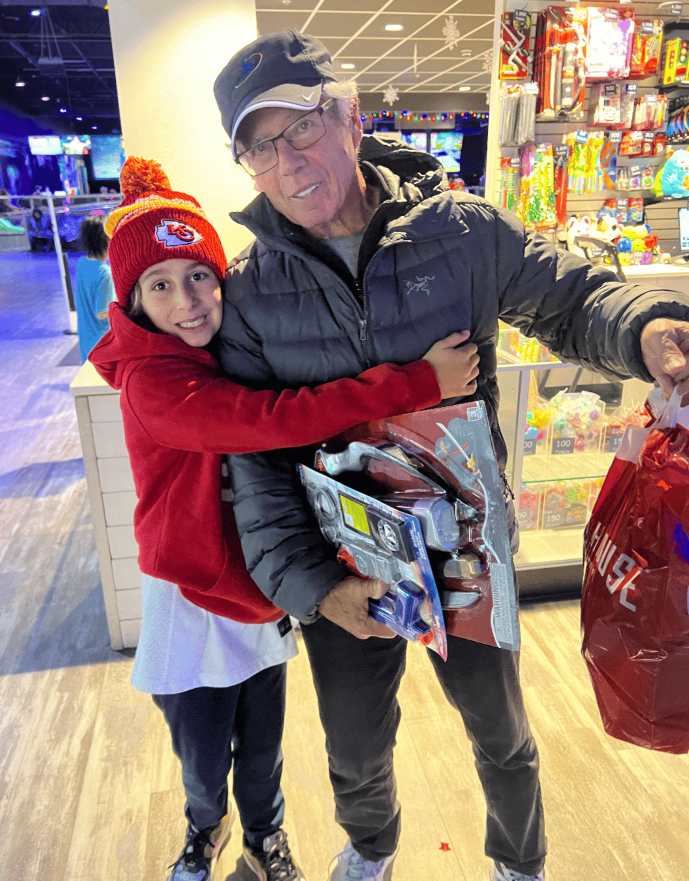It is not my dad’s ideal Saturday night. Those places are loud. But he was a trooper. Watching the joy on Bo’s face for three straight hours made it all worth it.