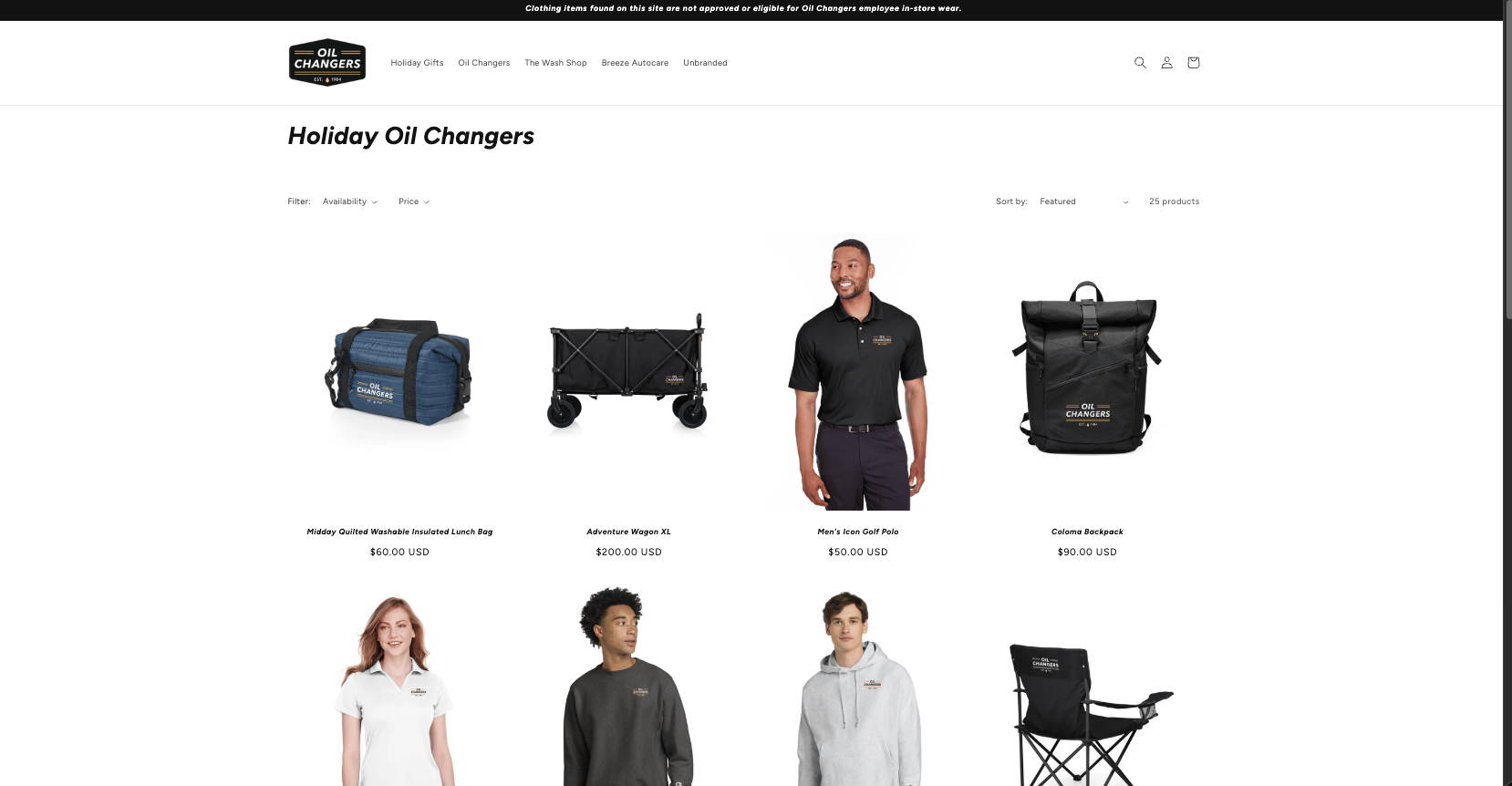 This year, Oil Changers wanted to treat their employees without the usual holiday headache. (No more giant spreadsheet of who gets a jacket vs. a mug, thank you very much.) So we built them a custom Holiday Swag Store for their team. Employees received a special link to the website and – voilà – they could pick out their own gift from a curated selection of branded merch! From cozy beanies and jackets featuring the Oil Changers logo to cute Wash Shop accessories with that new bubbly branding, there was something for everyone. The best part? Each employee got exactly what they wanted, in the right size, delivered straight to their door, with zero logistical stress on management. Brand Sauce handled the design, the sourcing, and the fulfillment so Oil Changers’ leadership could focus on what matters: spreading cheer.